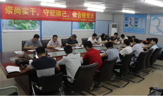 97周年,進一步激發(fā)全體黨員干事創(chuàng)業(yè)、創(chuàng)優(yōu)爭先的熱情,2018年7月20日,市水投實業(yè)黨支部在新開河項目部會議室舉行了“崇尚實干,守紀(jì)律己,做合格黨員”專題黨課作為7月“主題黨日”活動。