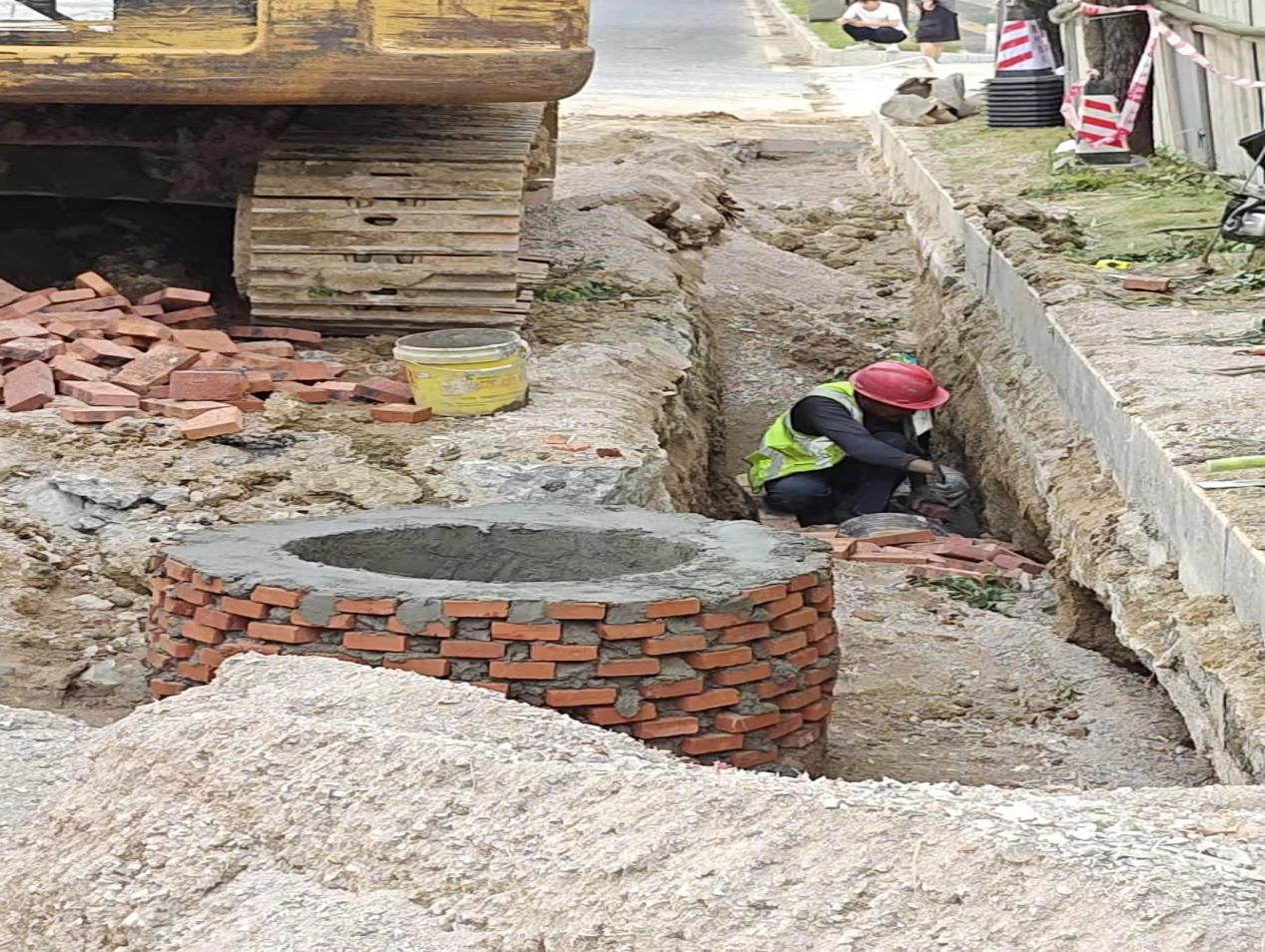 為了徹底解決問題,經(jīng)多方研究,公司果斷采取多項措施:一是回填雨水沖刷走的路基,保障路面行車安全;二是更換破損老化的DN300雨水管提高雨水排放效率;三是新建集水井,提高地表水收集能力,多方面保障雨水及時排放;同時修復(fù)污水井,確保污水不再溢流,更便于后期檢修和清疏。在整治過程中,不僅對排水系統(tǒng)和雨污分流進(jìn)行了全面檢查和優(yōu)化,還針對可能出現(xiàn)的問題進(jìn)行預(yù)防性維護(hù)。