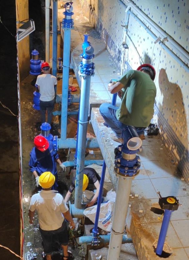 至凌晨3點(diǎn),所有需更換的設(shè)備全部安裝完畢,經(jīng)過(guò)細(xì)致地調(diào)試與檢查,完全符合技術(shù)要求!現(xiàn)場(chǎng)頓時(shí)爆發(fā)出興奮的輕呼——平流池可以通水,恢復(fù)制水了!此時(shí),城市仍在沉睡,燈火逐漸稀疏。