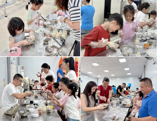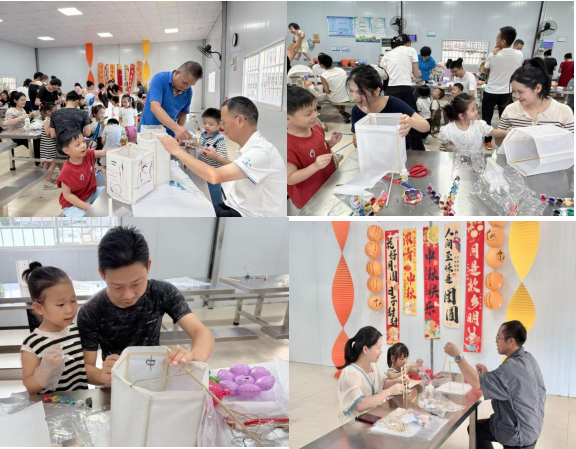 活動現(xiàn)場,22組家庭化身為“美食工匠”,開啟了冰皮月餅DIY之旅,從揉面、包餡到壓模,親子間的默契協(xié)作下,一枚枚印有“平山自來水廠”“城南水塔”“水泥船泵房”等公司發(fā)展史上標志性建筑物圖案的月餅在掌心悄然成型。在活動的另一側,二十余盞創(chuàng)意燈籠正悄然點亮,職工家庭以公司發(fā)展歷程為靈感,利用材料包中的竹篾、彩筆等素材,設計出“惠東供水60周年”“中秋快樂”等特色燈籠,將對企業(yè)發(fā)展的美好祝福融入其中。最終,所有家庭自制的月餅和燈籠作為活動紀念品被帶回家中,更成為傳遞企業(yè)溫情的獨特載體。